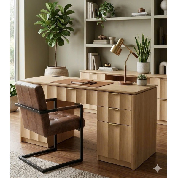 Với lớp hoàn thiện bằng gỗ sồi tự nhiên và phần cứng kim loại màu xám mộc mạc, chiếc bàn này sẽ phù hợp với nhiều phong cách trang trí nhà cửa và bảng màu khác nhau.