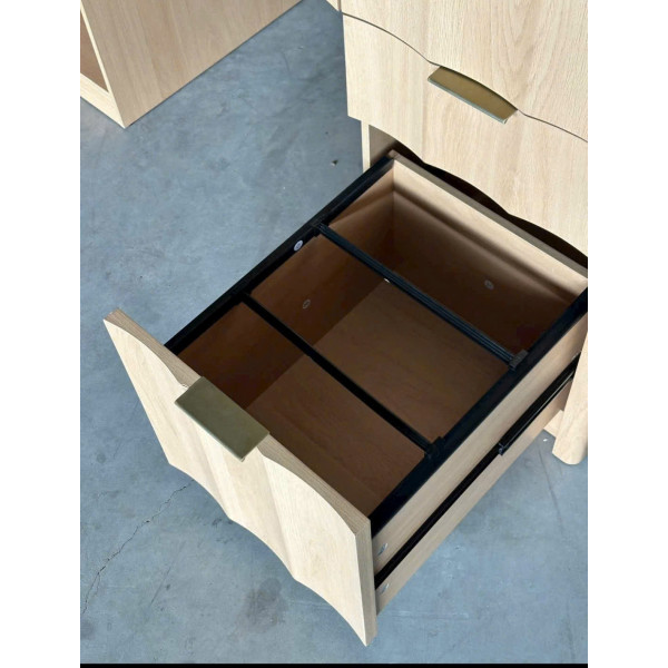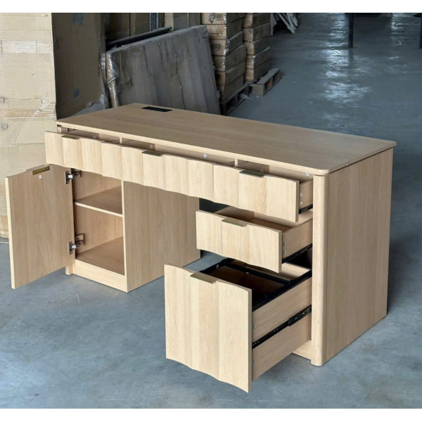 Tay nắm kim - Bản lề đóng êm - Bàn có các ngăn kéo rộng rãi để đựng giấy tờ và các phụ kiện nhỏ.