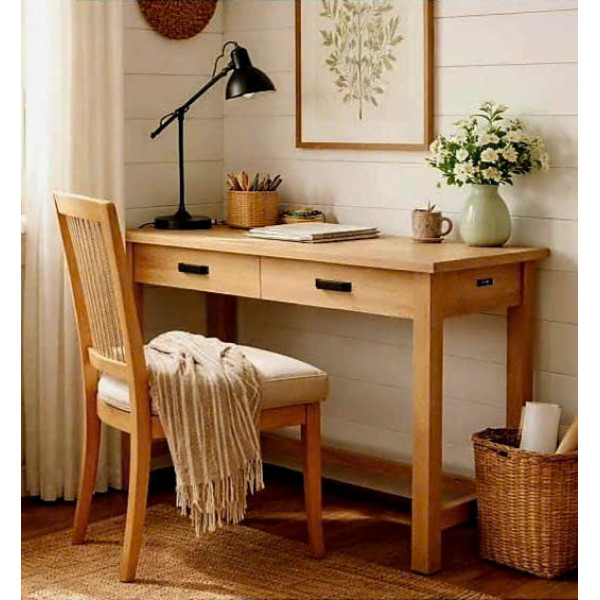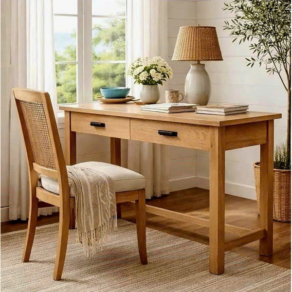 • Với lớp hoàn thiện bằng gỗ sồi tự nhiên và phần cứng kim loại màu xám bạc mộc mạc, chiếc bàn này sẽ phù hợp với nhiều phong cách trang trí nhà cửa và bảng màu khác nhau.
