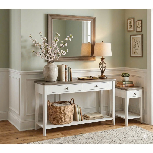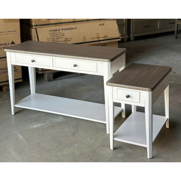 New P2728-23 : Bàn Góc , Bàn Trang Trí - Màu Trắng + Nâu