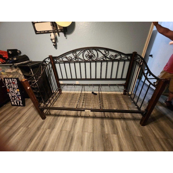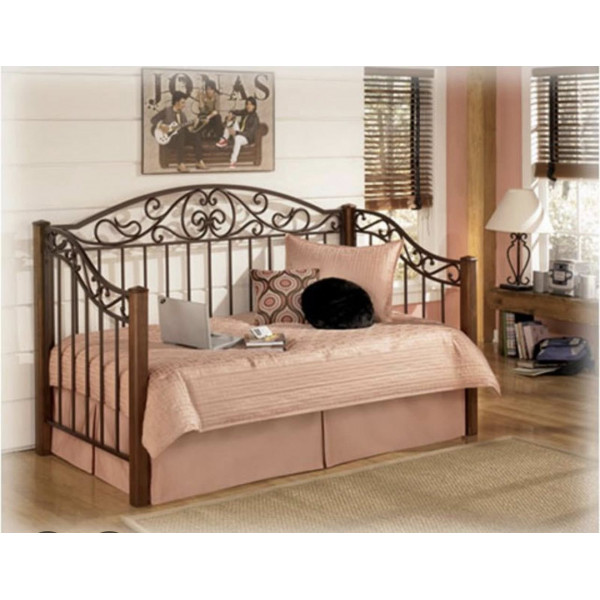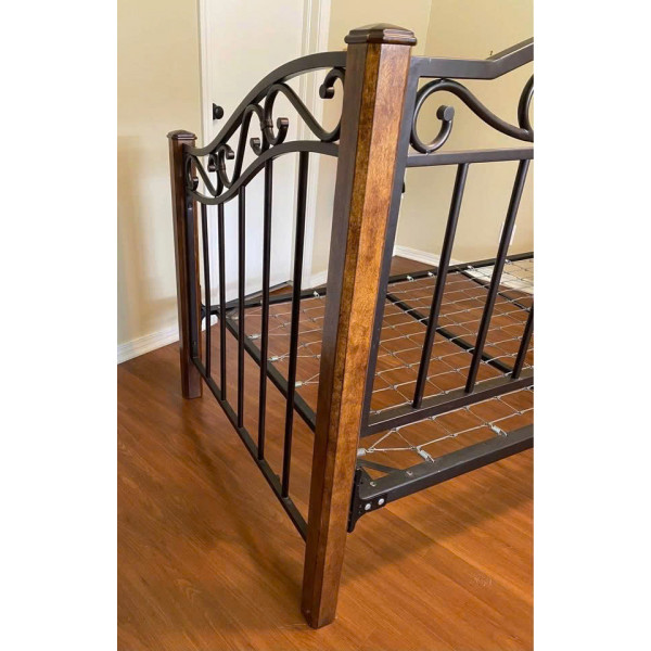 • Phần lưng và hai bên của chiếc giường nằm này có thiết kế lưng lạc đà bằng kim loại cách điệu với các họa tiết kim loại uốn lượn trên các thanh dọc.