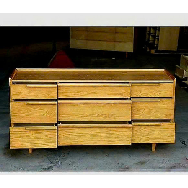 SB589 : Tủ Ngang 09 Ngăn Kéo Màu Vàng Gỗ - Ngang 172cm