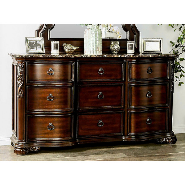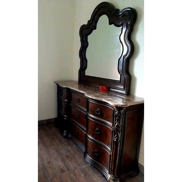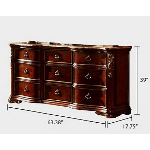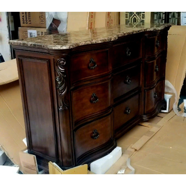 Tủ Ngang 09 Ngăn Kéo + Mặt Đá Hoa Cương