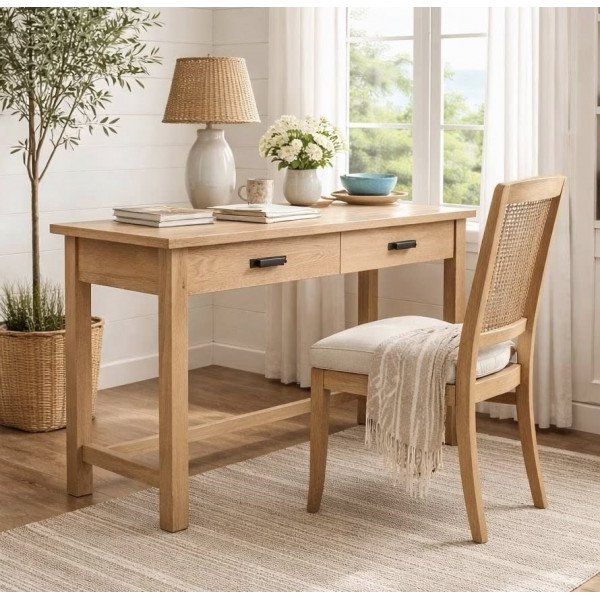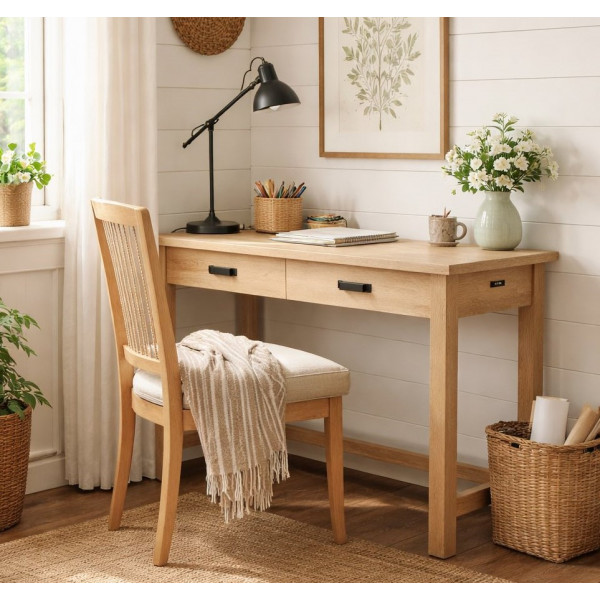 Với lớp hoàn thiện bằng gỗ sồi tự nhiên và phần cứng kim loại màu xám bạc mộc mạc, chiếc bàn này sẽ phù hợp với nhiều phong cách trang trí nhà cửa và bảng màu khác nhau.