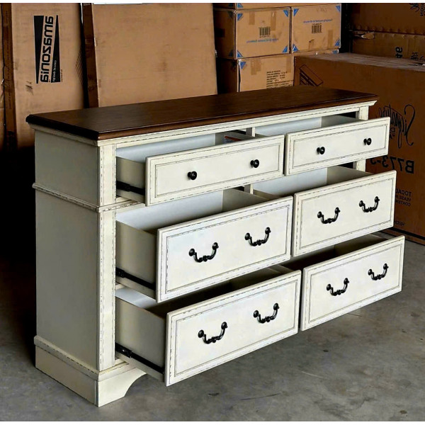 New B747 - 31 : Tủ 6 Ngăn Kéo Giả Cổ - Màu Trắng Sương Mù