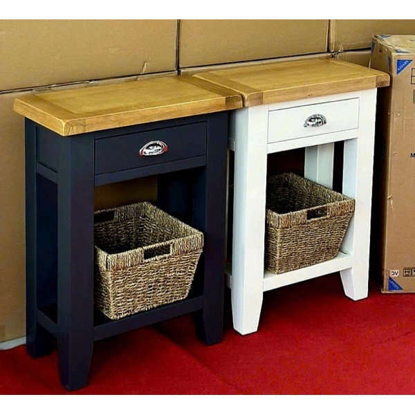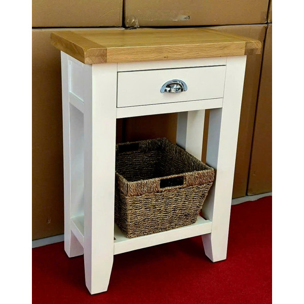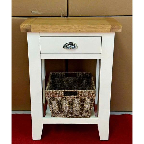 New TT-TEL-WH : Tủ 1 Ngăn Kéo + Rổ Cói ( Trắng + Vàng Gỗ )